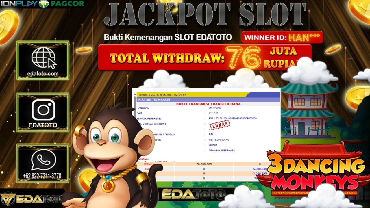 Selamat Kepada Pemilik user ID : REI1*** Hari/Tanggal :JUM’AT / 19, November 2025 Jackpot : Rp. 96,00,000 JT Withdraw :90,000,000 JT . . .