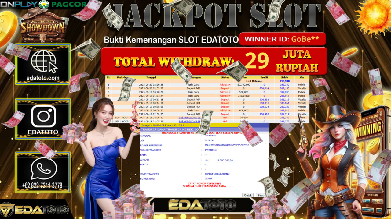 Selamat Kepada Pemilik user ID : GoBe** Hari/Tanggal : Senin/ 20, September 2025 Jackpot : Rp. 29.780.000 JT Permainan : . . .