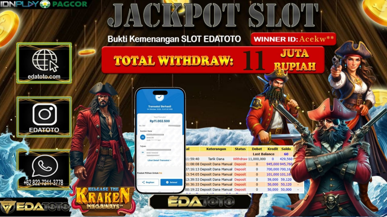 Selamat Kepada Pemilik user ID : Acekw** Hari/Tanggal : Rabu / 15, Oktober 2025 Jackpot : Rp. 11.000.000 JT Permainan . . .