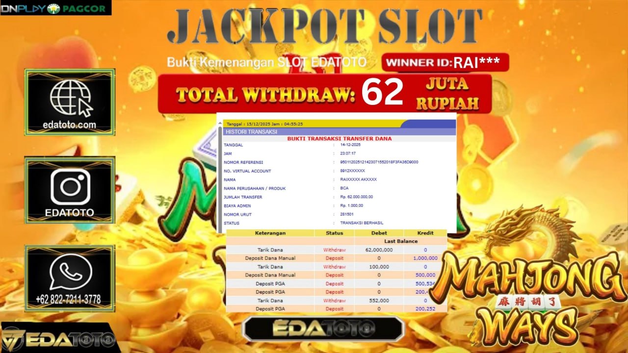 Selamat Kepada Pemilik user ID : RAI*** Hari/Tanggal :kamis/ 14, Desember 2025 Jackpot : Rp. 66,000,000 JT Withdraw :66,000,000 JT . . .