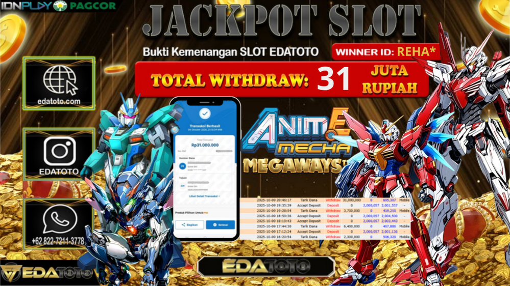 Selamat Kepada Pemilik user ID : Reha* Hari/Tanggal : Jumat/ 10, Oktober 2025 Jackpot : Rp. 31.000.000 JT Permainan : Anime . . .