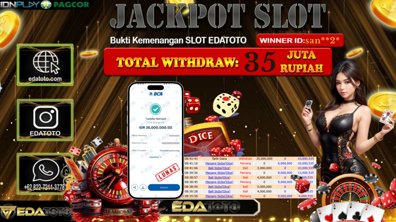 Selamat Kepada Pemilik user ID : san**2* Hari/Tanggal : Selasa / 14, Oktober 2025 Jackpot : Rp. 35.000.000 JT Permainan . . .