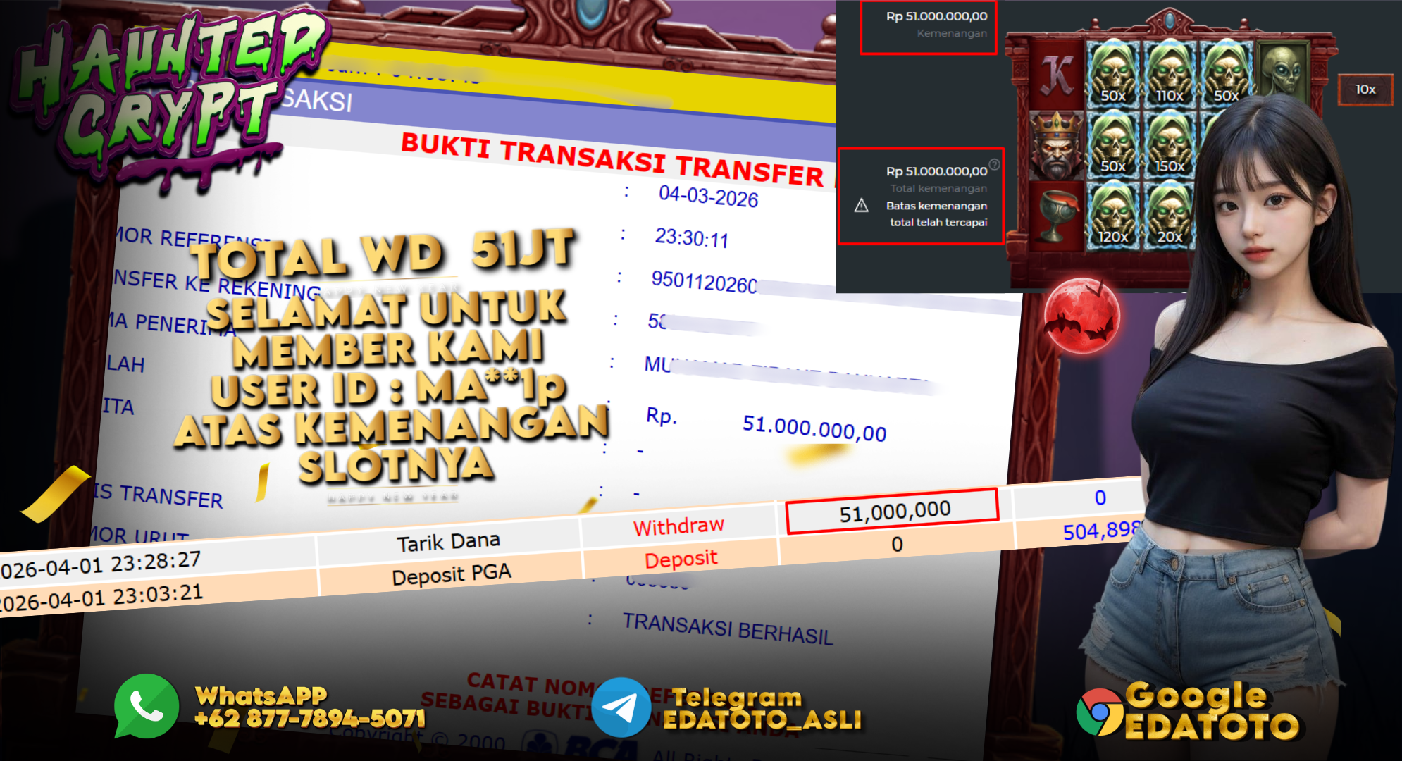 Selamat Kepada Pemilik user ID :MA**1p Hari/Tanggal : Rabu/ 04 MARET 2026 Jackpot : Rp,  51,000,000 JT Withdraw : 51,000,000 . . .