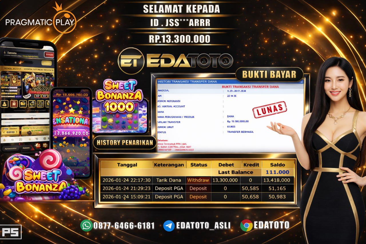 Selamat Kepada Pemilik user ID : JSS***ARRRR Hari/Tanggal :sabtu/ 24 Januari 2026 Jackpot : Rp. 13,300,000 JT Withdraw : 13,300,000 . . .